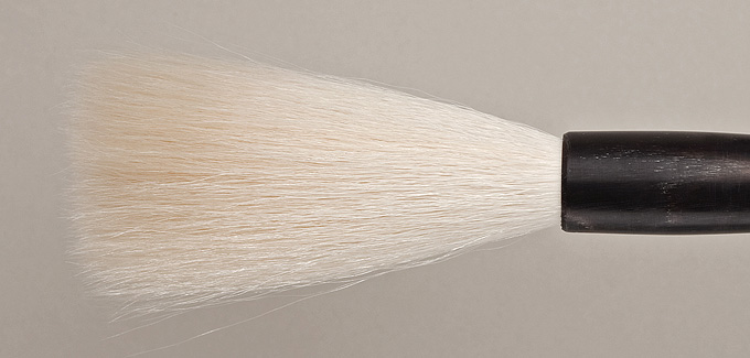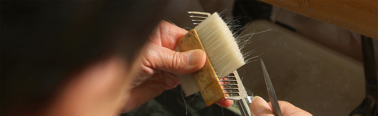手作り: 職人が一本一本手作業で毛を整え、筆の形を作り上げていきます。毛先のカット、毛量の調整など、細部に至るまで職人の技術が活かされています。