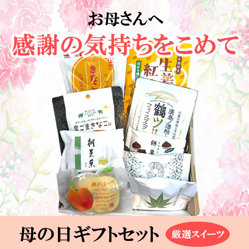 2026年の母の日は5月10日(日)。心を込めたありがとうの気持ちを広島のスイーツで贈りませんか?TAUオンラインストアでは2種類の母の日ギフトをご用意。和テイストをメインにフェイスマスクを加えた【厳選スイーツセット】と生産量日本一、広島瀬戸内レモンスイーツにハンドクリームを加えた【広島レモンセット】 。どちらもアンテナショップで人気の商品の詰め合わせです。「母の日専用熨斗」と付けてお届けします。お母さんの好きなものやイメージを思い浮かべれば、ギフト選びは楽しいものに。