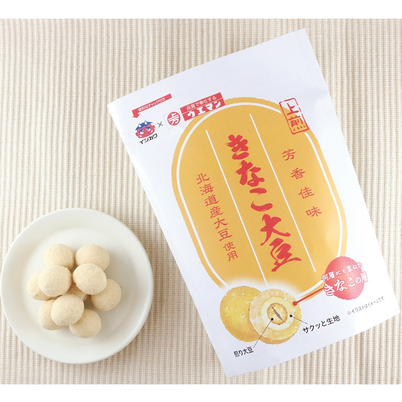 イシカワ【きなこ大豆】 県内のきなこ製造所とコラボした豆菓子です。焙煎した大豆に、サクッとした生地をコーティングしました。 |