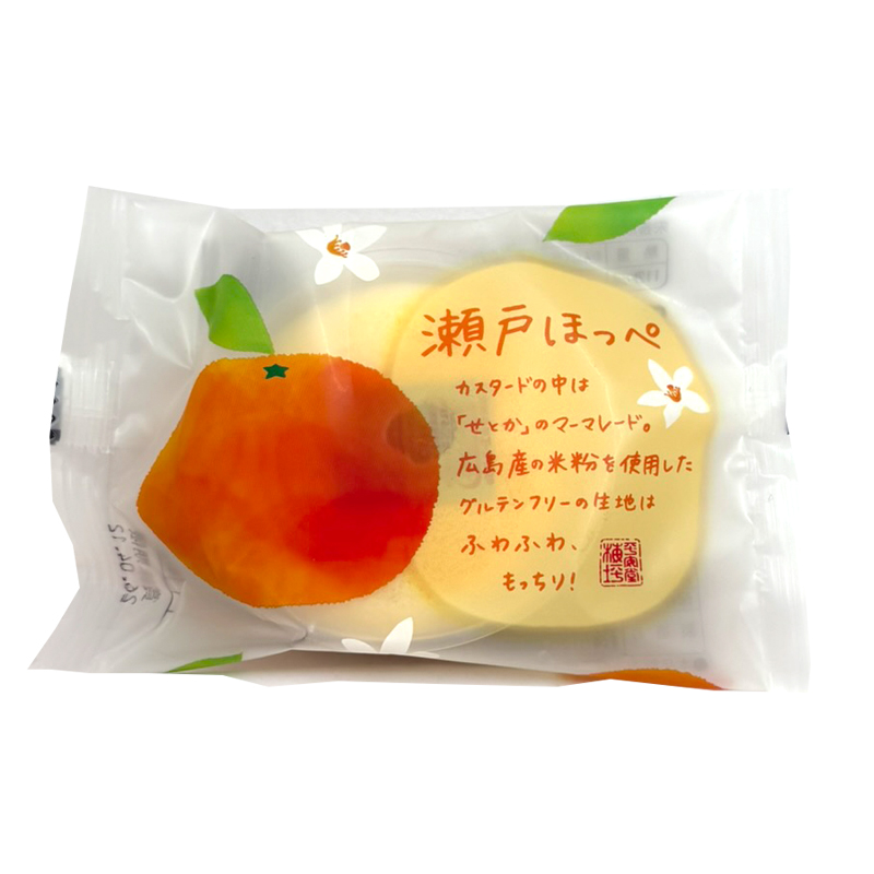 平安堂梅坪【瀬戸ほっぺ】 やわらかい生地の中にはカスタードクリームと濃厚でジューシー「せとか」のマーマレード入り。 |