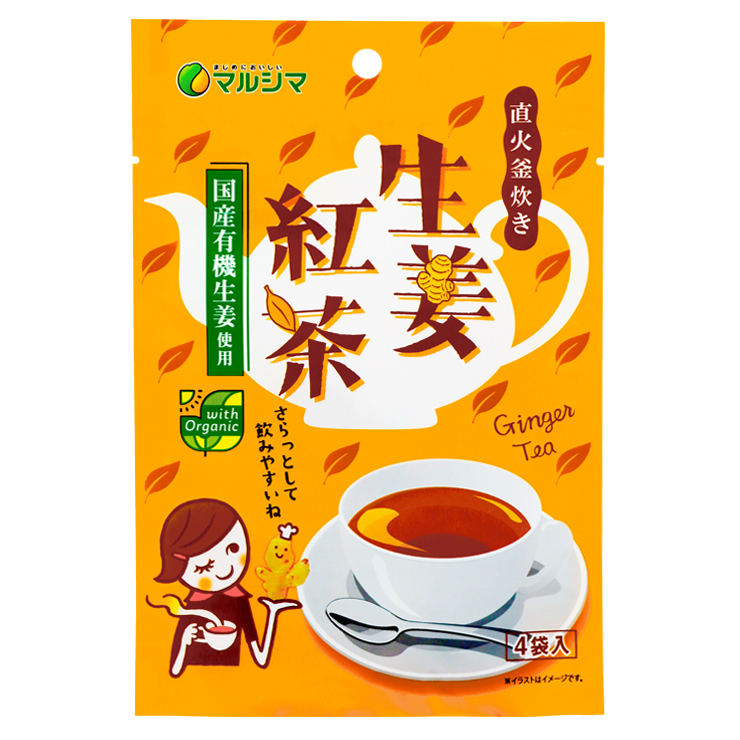 純正食品マルシマ【直火釜炊生姜紅茶】 香り高い紅茶に国産有機生姜をブレンドしました。昔ながらの「直火釜」で炊いていますのでコクがあります。 |