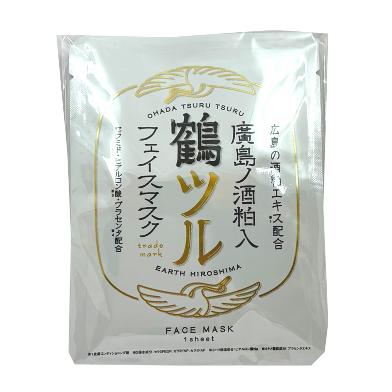 ソアラサービス【鶴ツルフェイスマスク】 全国でも有数の酒処である広島の酒粕エキスと3つの美容成分セラミド・ヒアルロン酸・プラセンタを配合したフェイスマスク。(こちらは美容用品です。食品ではありません。) |