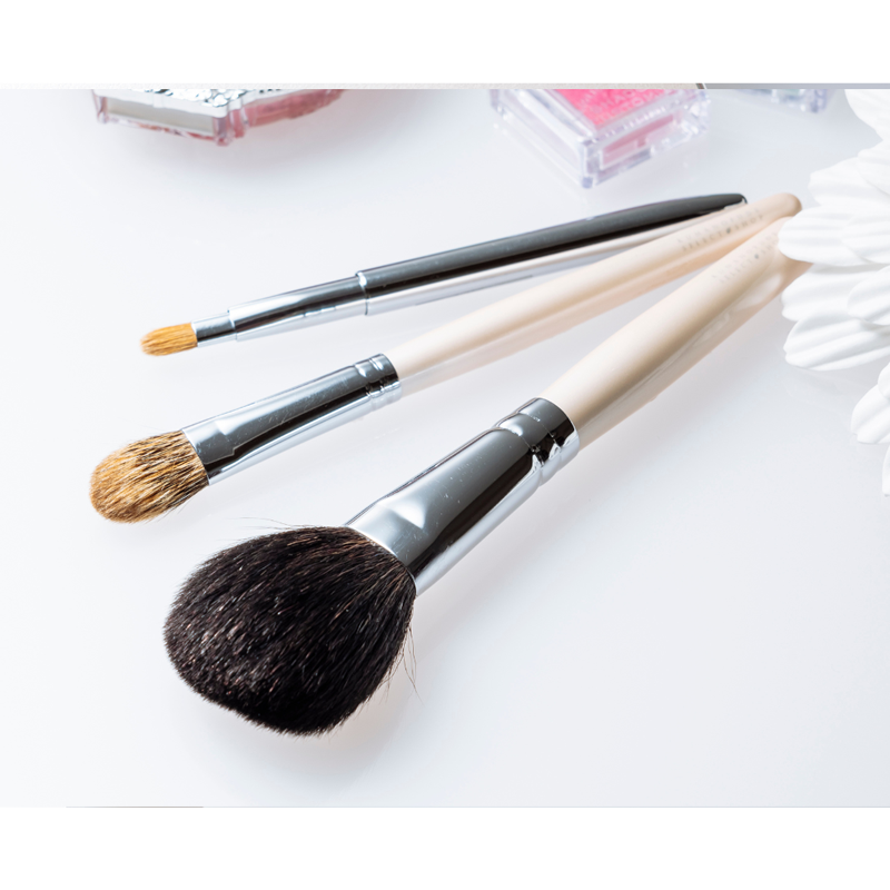ベーシックで使いやすいチーク、シャドウ、リップブラシのセットです。ご自身で使われることはもちろん、お土産やブライダルの引き出物など、贈り物としても最適です。