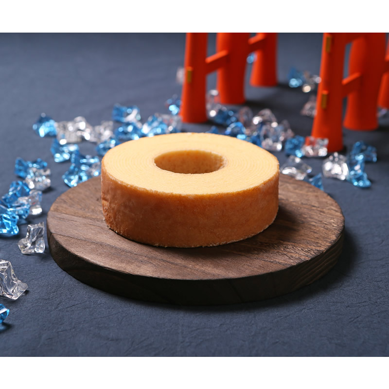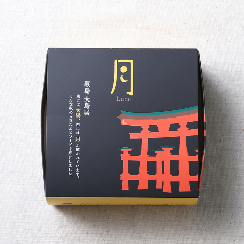 世界遺産でもある宮島の厳島神社の大鳥居の西側には「月」、東側には「太陽」の紋様が描かれています。その「「月」をモチーフにソフトな食感に仕上げたバームクーヘンが「月」になります。