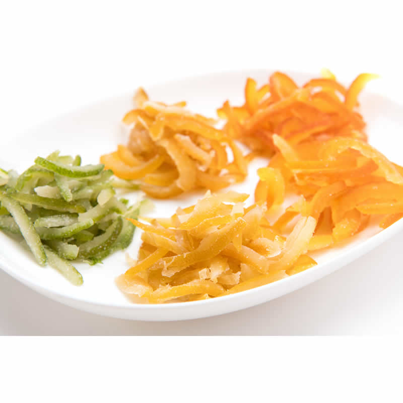 12月初旬までしか採れない貴重な広島グリーンレモンの果皮 を使って手造りした、清涼感のある爽やかな香りを楽しめる、苦みの少ないちょっと酸味の利いたピールです。柑橘の酸っぱさと自然の香りが口いっぱいに広がる無添加スイーツです。