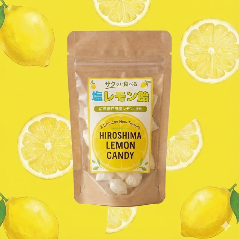 国産レモンの生産量日本一の産地「瀬戸田」のレモン果汁を詰め込んだ、サクッと噛める新食感の飴です。レモンの爽やかな酸味と塩味の効いた味わいです。手軽にリフレッシュできる商品としてぜひお楽しみください。