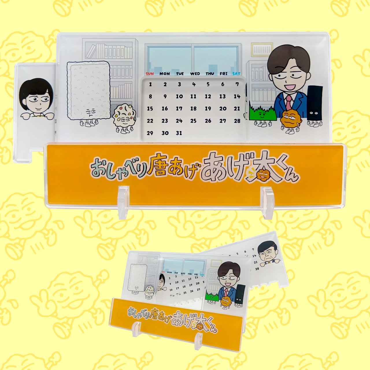 おしゃべり唐揚げあげ太くんアクリルカレンダー2026が登場!色んな所に飾れたり、日付をズラすと〇〇が現れたりと!1年通して楽しめるカレンダー!1家1個はノルマじゃけんね!